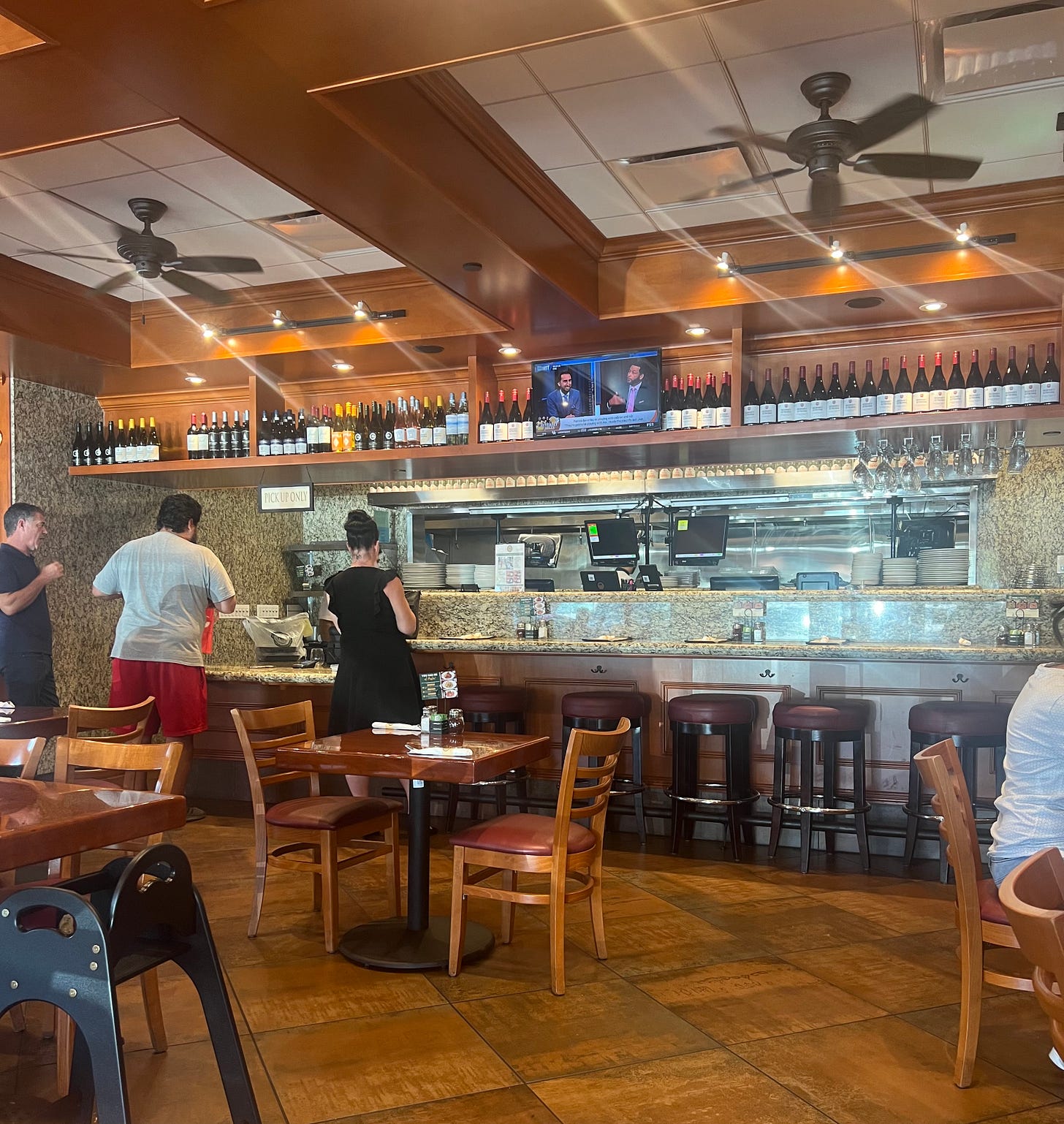 We decided to go for lunch. The parking lot is very large and there were plenty of spaces. There is a nice outside patio but since the temperature was about 1,000 degrees, we opted for inside dining. The dining room is very spacious and the tables are spaced nicely. Service was quick and very good.