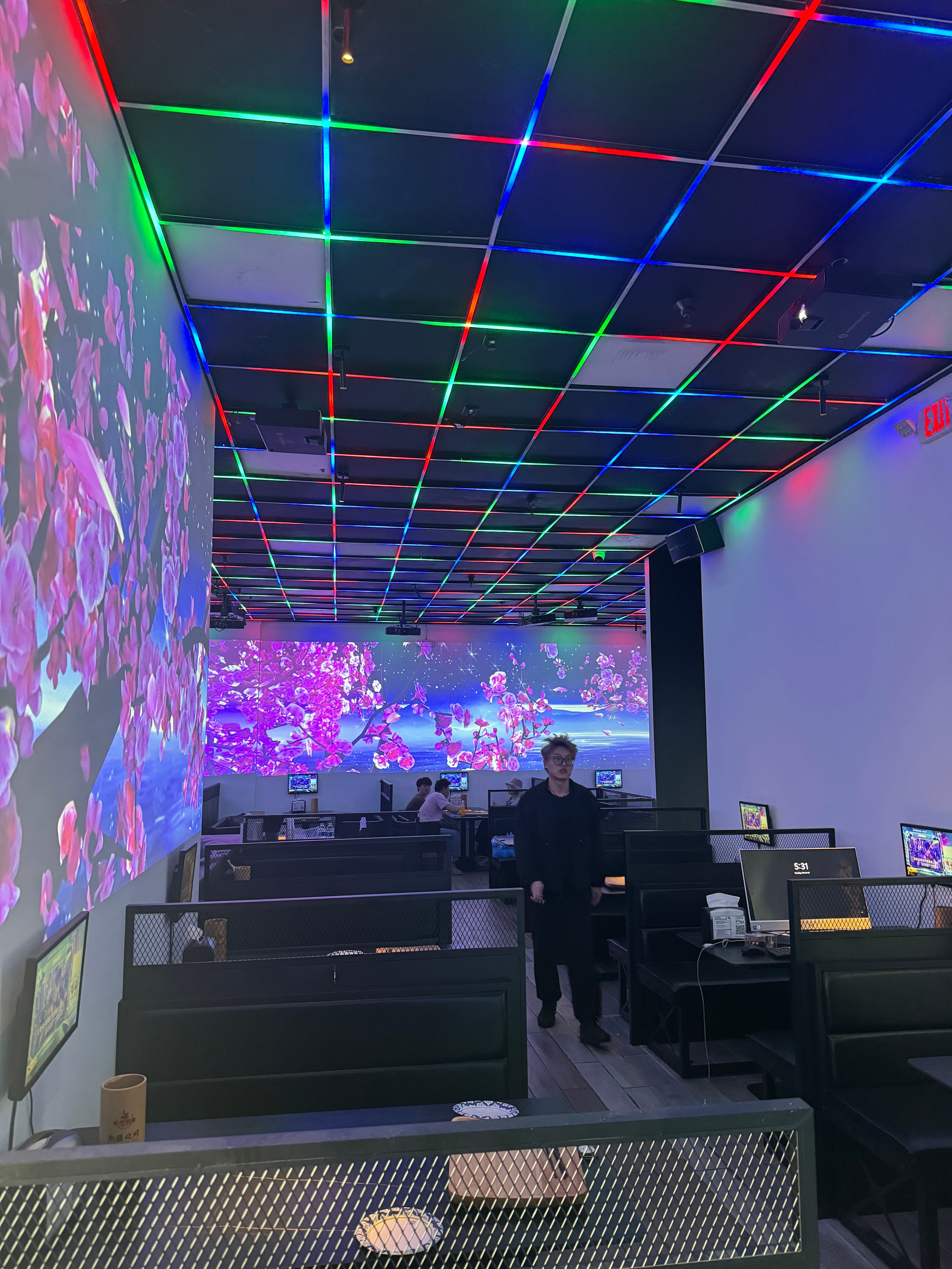 When you walk into the restaurant, be prepared for an explosion of color, including neon geometrical lights, projections of beautiful flowers and fish on the walls, and more. It was very spacious and very striking in its décor. Very techno-modern for Linda Vista. We were seated immediately and told the menu was on the QOR code and we would order from our table which had a code we input into our phone. We were each given a bottle of water. They do not yet have an alcohol license, but hope to soon.