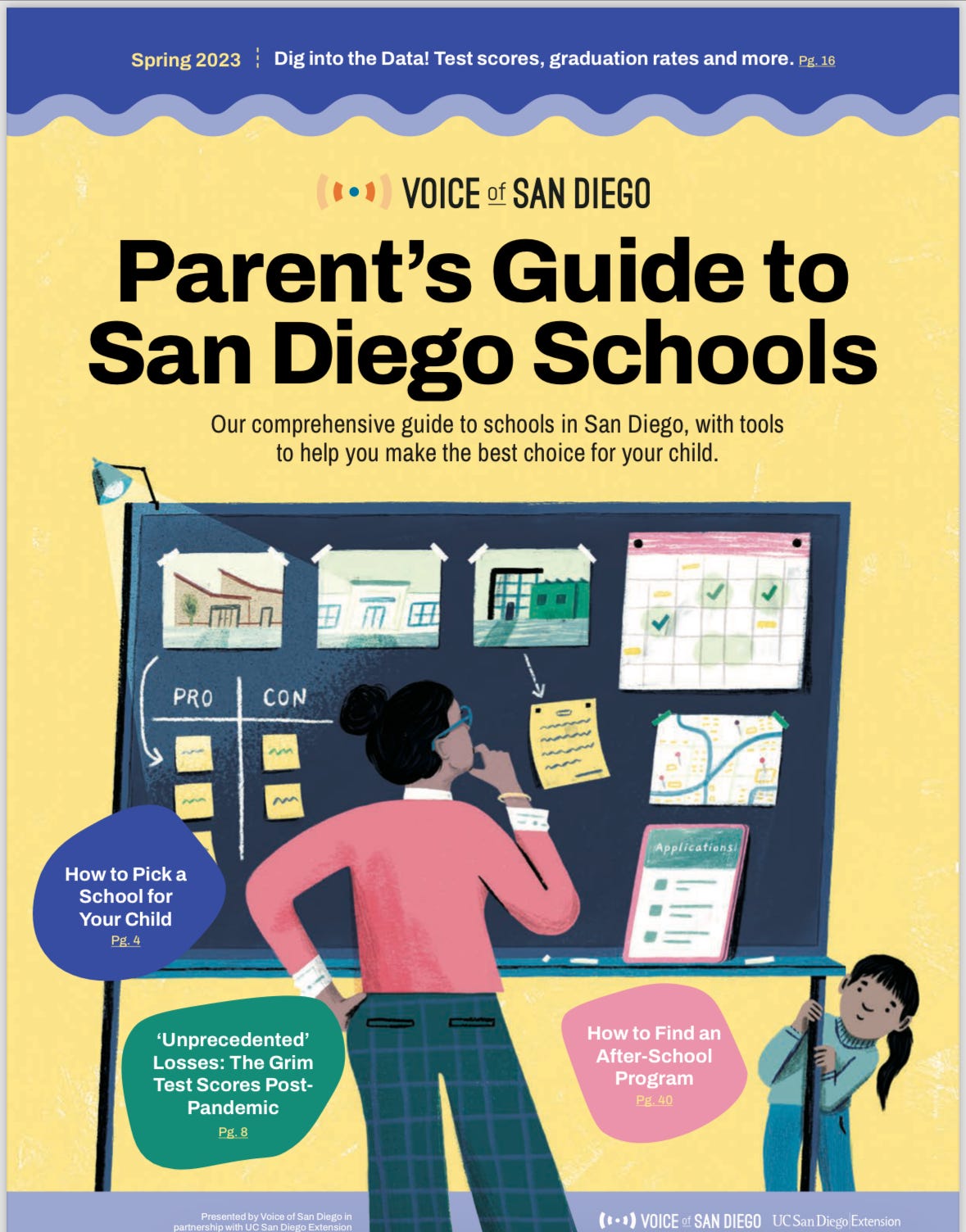 Fortunately, there is one document published each year that offers parents detailed information about each school in the district and throughout the county. The document is titled A Parents’s Guide to San Diego Schools. Available in both hard copy and downloadable versions, it is published by the non-profit digital newspaper Voice of San Diego.