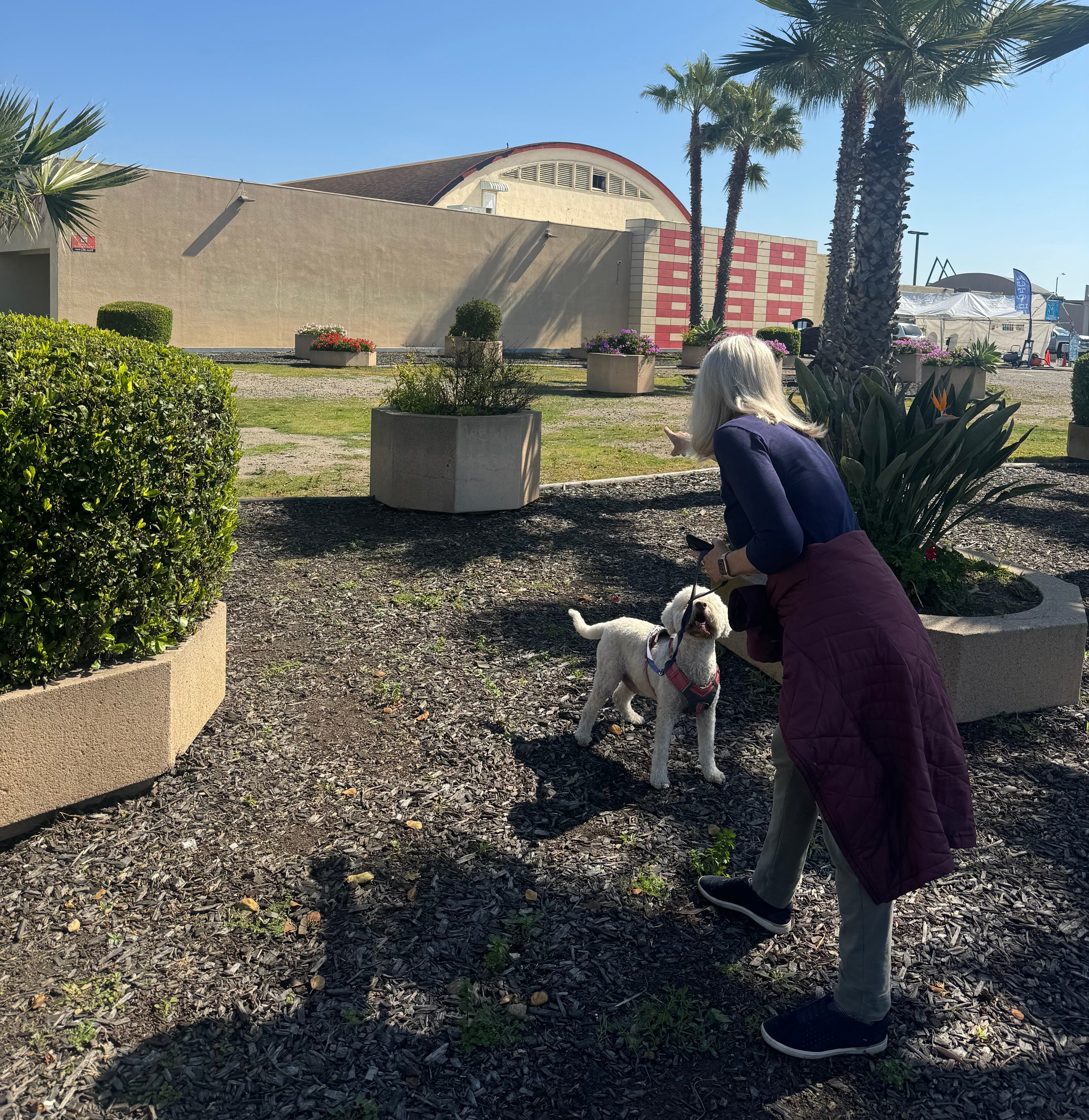 In a related development, one LV resident and her dog were in attendance for the LV Spring Equinox celebration held at our own community’s version of Stonehenge, which is located at the corner of Comstock Street and Linda Vista Road.